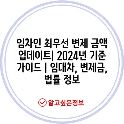 임차인 최우선 변제 금액 업데이트| 2024년 기준 설명서 | 임대차, 변제금, 법률 정보
