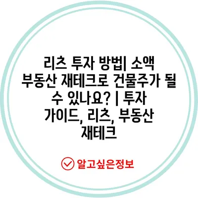 소액 부동산 재테크의 첫걸음은 리츠에 대한 이해입니다. 리츠는 상장된 부동산 투자신탁으로, 투자자들은 리츠의 주식을 구매함으로써 간접적으로 부동산에 투자하게 됩니다. 이러한 방식은 직접 부동산을 구입하는 것보다 훨씬 적은 자본으로 시작할 수 있게 해주죠. 리츠를 통해 배당 수익을 얻거나 자산가치의 상승으로 인해 잇따른 투자 수익을 기대할 수 있습니다.