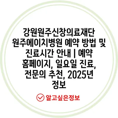 강원원주신창의료재단 원주에이치병원 예약 방법 및 진료시간 공지 | 예약 홈페이지, 일요일 진료, 전연락 추천, 2025년 정보 에 대해 자주 묻는 질문 TOP 5