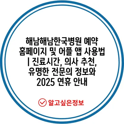 해남해남한국병원 예약 홈페이지 및 어플 앱 사용법 | 진료시간, 의사 추천, 유명한 전연락 정보와 2025 연휴 공지 에 대해 자주 묻는 질문 TOP 5
