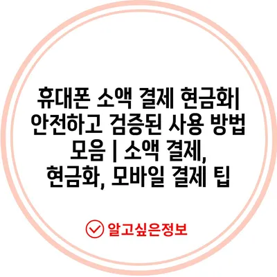 휴대폰 소액 결제 현금화| 안전하고 검증된 사용 방법 모음 | 소액 결제, 현금화, 모바일 결제 팁