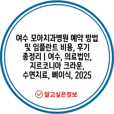 여수 모아치과병원 예약 방법 및 임플란트 비용, 후기 총정리 | 여수, 의료법인, 지르코니아 크라운, 수면치료, 뼈이식, 2025에 대해 알아보겠습니다.