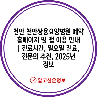 천안 천안쌍용요양병원 예약 홈페이지 및 앱 이용 공지 | 진료시간, 일요일 진료, 전연락 추천, 2025년 정보 에 대해 자주 묻는 질문 TOP 5