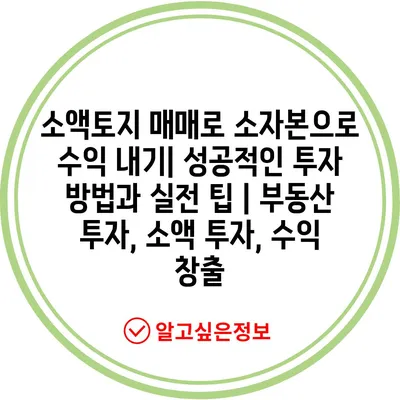 소액토지 매매로 소자본으로 수익 내기| 성공적인 투자 방법과 실전 팁 | 부동산 투자, 소액 투자, 수익 창출