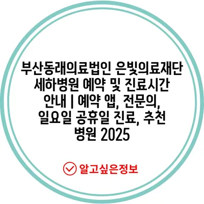 부산동래의료법인 은빛의료재단 세하병원 예약 및 진료시간 공지 | 예약 앱, 전연락, 일요일 공휴일 진료, 추천 병원 2025 에 대해 자주 묻는 질문 TOP 5