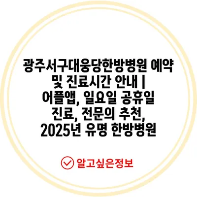 ✅ 광주서구대웅당한방병원 예약 방법과 진료시간을 지금 바로 알아보세요!