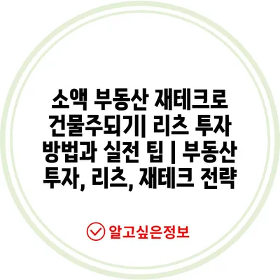 소액으로도 부동산 투자를 시작할 수 있는 방법들이 존재합니다.