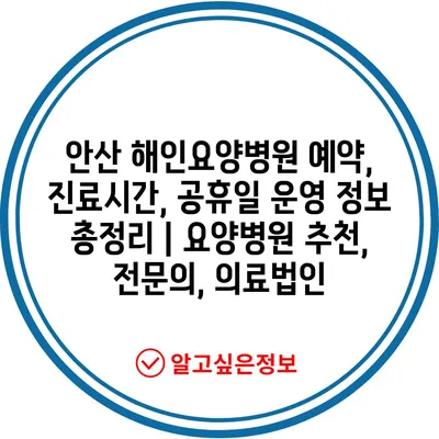 ✅ 안산 해인요양병원의 진료시간과 예약 방법을 지금 바로 알아보세요!