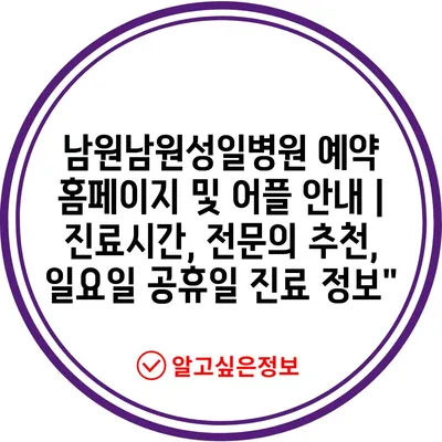 남원남원성일병원 예약 홈페이지 및 어플 안내 | 진료시간, 전문의 추천, 일요일 공휴일 진료 정보”