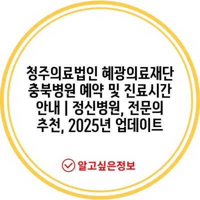 청주의료법인 혜광의료재단 충북병원 예약 및 진료시간 공지 | 정신병원, 전연락 추천, 2025년 업데이트