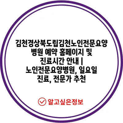 ✅ 김천노인전문요양병원의 진료시간과 예약 방법을 알아보세요.