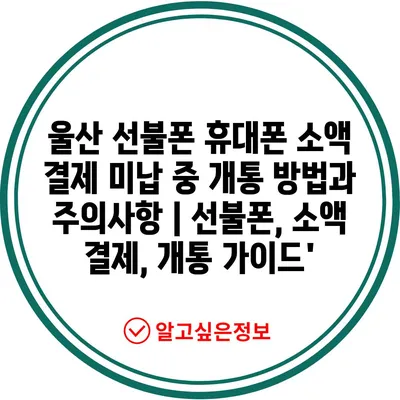 울산 선불폰 휴대폰 소액 결제 미납 중 개통 방법과 주의사항 | 선불폰, 소액 결제, 개통 설명서’에 대해 자주 묻는 질문 TOP 5