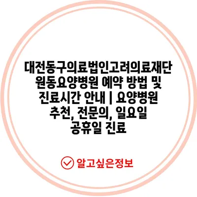 대전동구의료법인고려의료재단 원동요양병원 예약 방법 및 진료시간 공지 | 요양병원 추천, 전연락, 일요일 공휴일 진료 에 대해 자주 묻는 질문 TOP 5