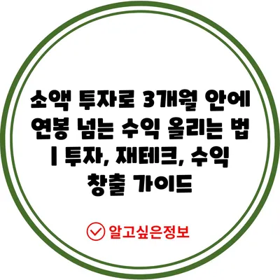 소액 투자로 3개월 안에 연봉 넘는 수익 올리는 법 | 투자, 재테크, 수익 창출 가이드