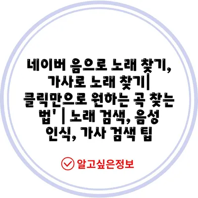 네이버 음으로 노래 찾기, 가사로 노래 찾기| 클릭만으로 원하는 곡 찾는 법’ | 노래 검색, 음성 인식, 가사 검색 팁 에 대해 자주 묻는 질문 TOP 5