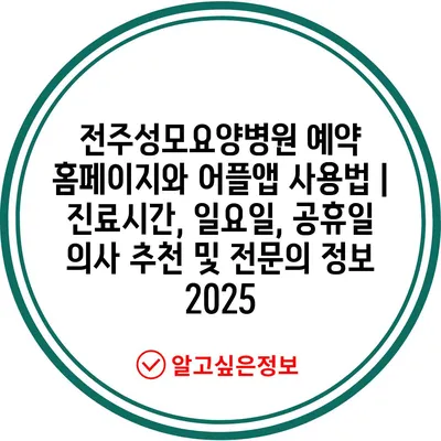 전주성모요양병원 예약 홈페이지와 어플앱 사용법 | 진료시간, 일요일, 공휴일 의사 추천 및 전연락 정보 2025