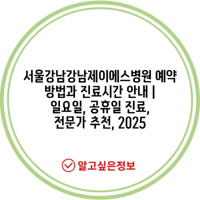 서울강남강남제이에스병원 예약 방법과 진료시간 공지 | 일요일, 공휴일 진료, 전문가 추천, 2025 에 대해 자주 묻는 질문 TOP 5