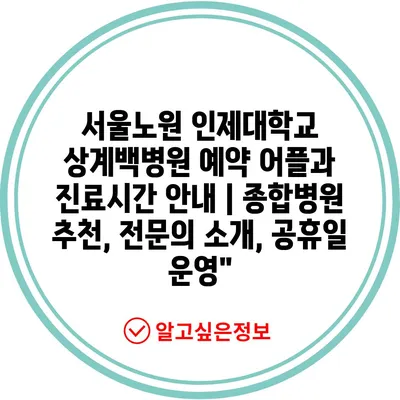 ✅ 서울노원 인제대학교 상계백병원 예약 꿀팁을 지금 확인하세요!