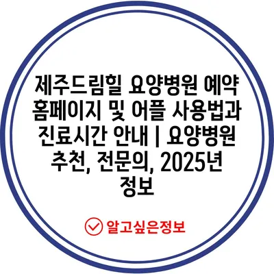 ✅ 제주드림힐 요양병원 예약 방법을 알아보세요.