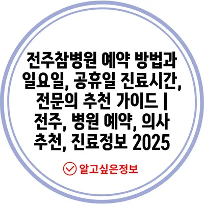 전주참병원 예약 방법과 일요일, 공휴일 진료시간, 전연락 추천 설명서 | 전주, 병원 예약, 의사 추천, 진료정보 2025 에 대해 자주 묻는 질문 TOP 5