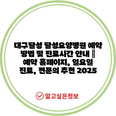 대구달성 달성요양병원 예약 방법 및 진료시간 안내 | 예약 홈페이지, 일요일 진료, 전문의 추천 2025