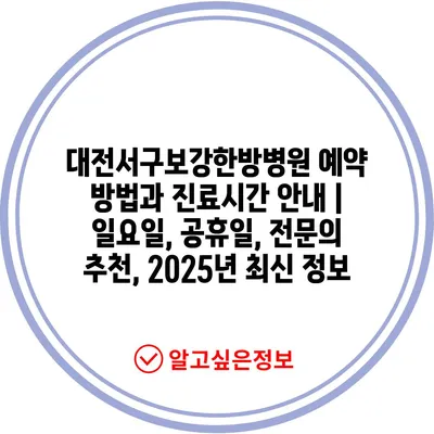 대전서구보강한방병원 예약 방법과 진료시간 공지 | 일요일, 공휴일, 전연락 추천, 2025년 최신 정보 에 대해 자주 묻는 질문 TOP 5