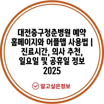 대전중구청춘병원 예약 홈페이지와 어플앱 사용법 | 진료시간, 의사 추천, 일요일 및 공휴일 정보 2025 에 대해 자주 묻는 질문 TOP 5