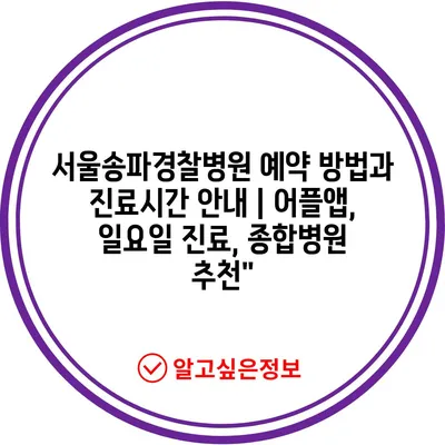✅ 서울송파경찰병원 예약 방법을 자세히 알아보세요.