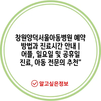 ✅ 창원양덕서울아동병원의 예약 방법을 자세히 알아보세요.