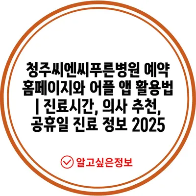청주씨엔씨푸른병원 예약 홈페이지와 어플 앱 활용법 | 진료시간, 의사 추천, 공휴일 진료 정보 2025에 대해 알아보겠습니다.