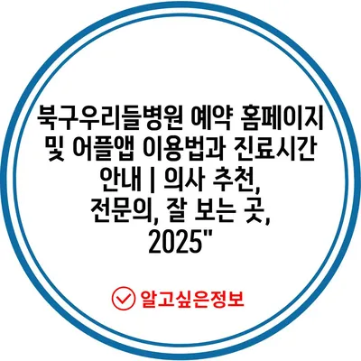 북구우리들병원 예약 홈페이지 및 어플앱 이용법과 진료시간 공지 | 의사 추천, 전연락, 잘 보는 곳, 2025 에 대해 자주 묻는 질문 TOP 5