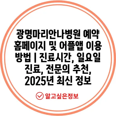 광명마리안나병원 예약 홈페이지 및 어플앱 이용 방법 | 진료시간, 일요일 진료, 전연락 추천, 2025년 최신 정보 에 대해 자주 묻는 질문 TOP 5