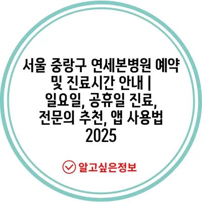 서울 중랑구 연세본병원 예약 및 진료시간 공지 | 일요일, 공휴일 진료, 전연락 추천, 앱 사용법 2025