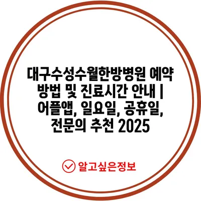 ✅ 대구수성수월한방병원의 예약 방법과 진료 시간을 자세히 알아보세요.