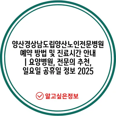 양산경상남도립양산노인전문병원 예약 방법 및 진료시간 공지 | 요양병원, 전연락 추천, 일요일 공휴일 정보 2025 에 대해 자주 묻는 질문 TOP 5