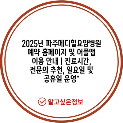 2025년 파주메디힐요양병원 예약 홈페이지 및 어플앱 이용 공지 | 진료시간, 전연락 추천, 일요일 및 공휴일 운영에 대해 자주 묻는 질문 TOP 5