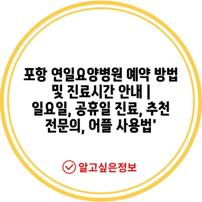 포항 연일요양병원 예약 방법 및 진료시간 공지 | 일요일, 공휴일 진료, 추천 전연락, 어플 사용법’ 에 대해 자주 묻는 질문 TOP 5