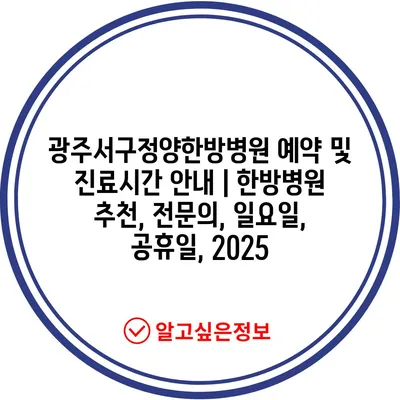 광주서구정양한방병원 예약 및 진료시간 공지 | 한방병원 추천, 전연락, 일요일, 공휴일, 2025 에 대해 자주 묻는 질문 TOP 5