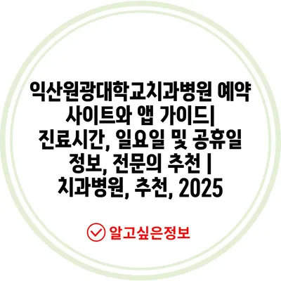 익산원광대학교치과병원 예약 사이트와 앱 설명서| 진료시간, 일요일 및 공휴일 정보, 전연락 추천 | 치과병원, 추천, 2025 에 대해 자주 묻는 질문 TOP 5