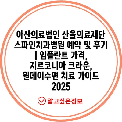 아산의료법인 산울의료재단 스파인치과병원 예약 및 후기 | 임플란트 가격, 지르코니아 크라운, 원데이수면 치료 가이드 2025