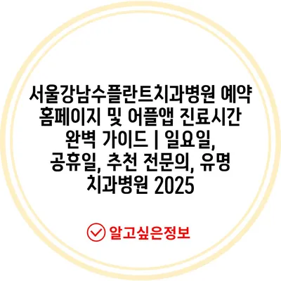 서울강남수플란트치과병원 예약 홈페이지 및 어플앱 진료시간 완벽 설명서 | 일요일, 공휴일, 추천 전연락, 유명 치과병원 2025