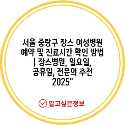 서울 중랑구 장스 여성병원 예약 및 진료시간 확인 방법 | 장스병원, 일요일, 공휴일, 전연락 추천 2025에 대해 알려알려드리겠습니다.