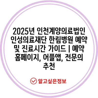 2025년 인천계양의료법인 인성의료재단 한림병원 예약 및 진료시간 설명서 | 예약 홈페이지, 어플앱, 전연락 추천 에 대해 자주 묻는 질문 TOP 5