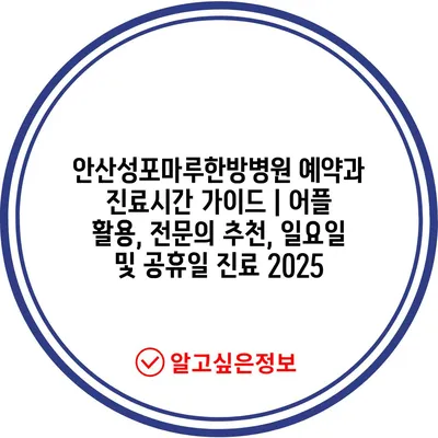 안산성포마루한방병원 예약과 진료시간 설명서 | 어플 활용, 전연락 추천, 일요일 및 공휴일 진료 2025