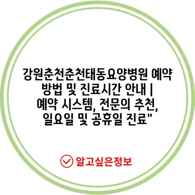 강원춘천춘천태동요양병원 예약 방법 및 진료시간 공지 | 예약 시스템, 전연락 추천, 일요일 및 공휴일 진료에 대해 자주 묻는 질문 TOP 5