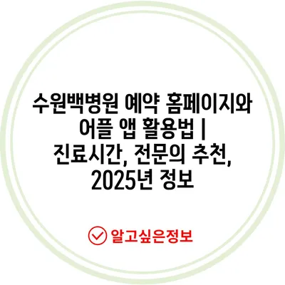 수원백병원 예약 홈페이지와 어플 앱 활용법 | 진료시간, 전연락 추천, 2025년 정보에 대해 알아보겠습니다.