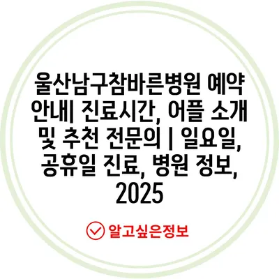 울산남구참바른병원 예약 공지| 진료시간, 어플 소개 및 추천 전연락 | 일요일, 공휴일 진료, 병원 정보, 2025 에 대해 자주 묻는 질문 TOP 5
