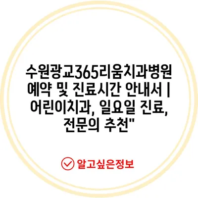 수원광교365리움치과병원 예약 및 진료시간 공지서 | 어린이치과, 일요일 진료, 전연락 추천에 대해 자주 묻는 질문 TOP 5