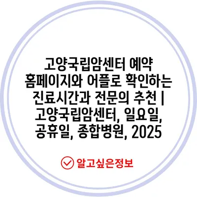 고양국립암센터 예약 홈페이지와 어플로 확인하는 진료시간과 전연락 추천 | 고양국립암센터, 일요일, 공휴일, 종합병원, 2025 에 대해 자주 묻는 질문 TOP 5