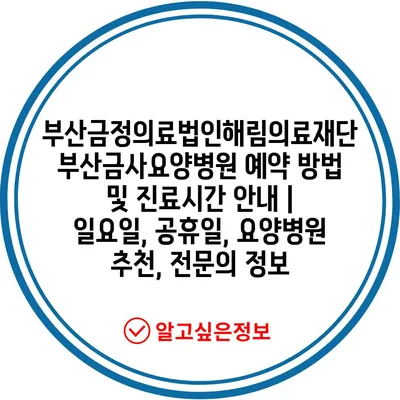 ✅ 부산금정의료법인 해림의료재단의 예약 방법과 진료시간을 지금 바로 확인하세요.
